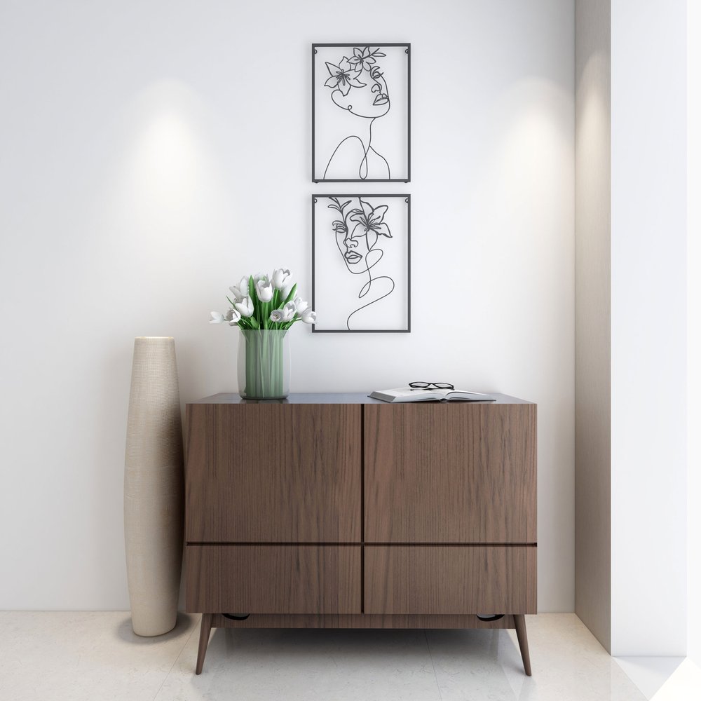 20" X 14" Black Metal Abstract Female Face Hanging Dimensional Sculpture