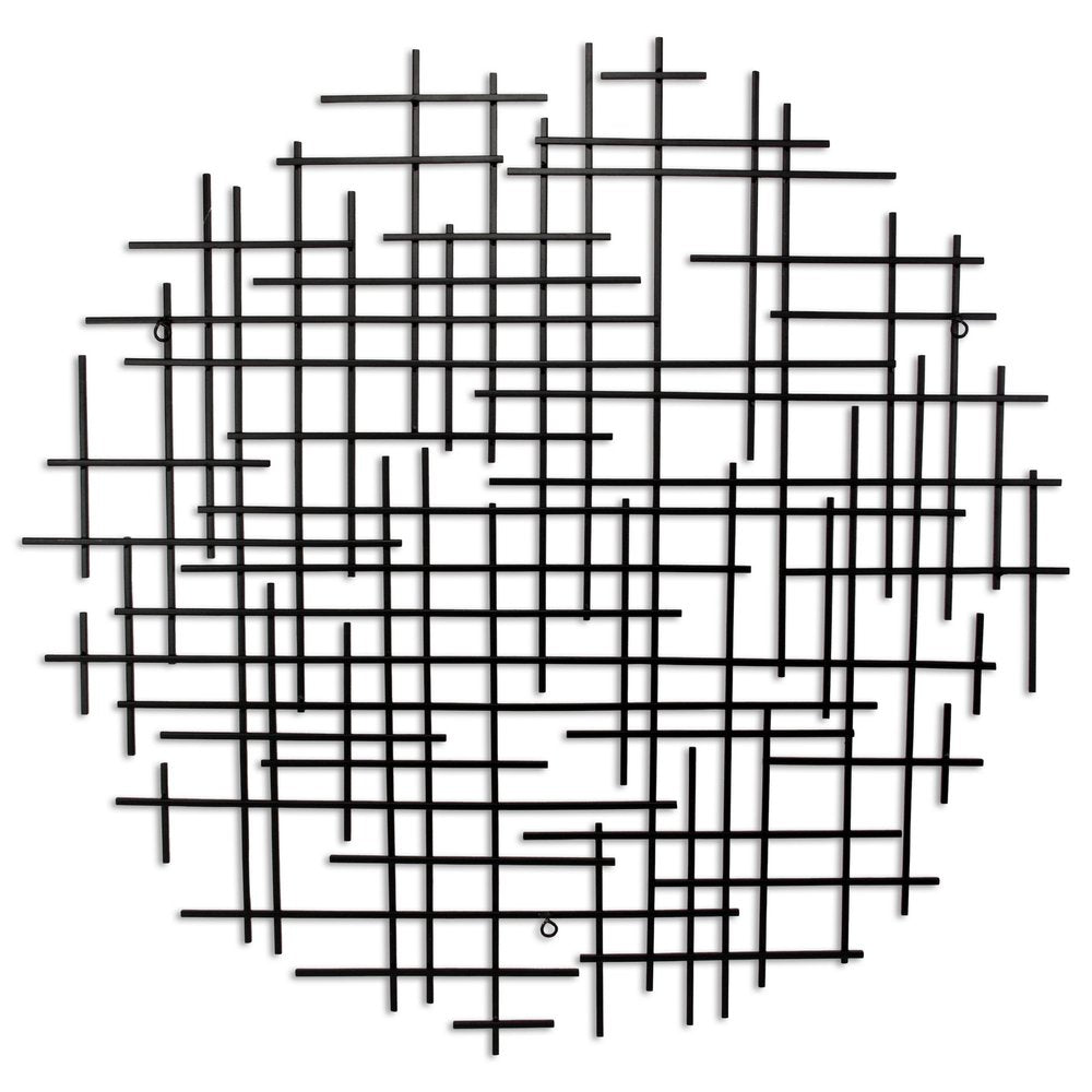 37" X 38" Black Metal Abstract Lines Round Hanging Dimensional Sculpture