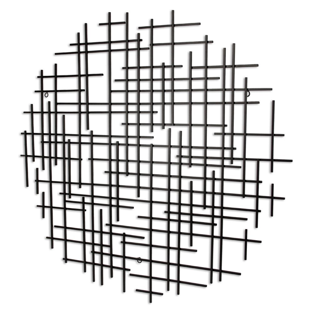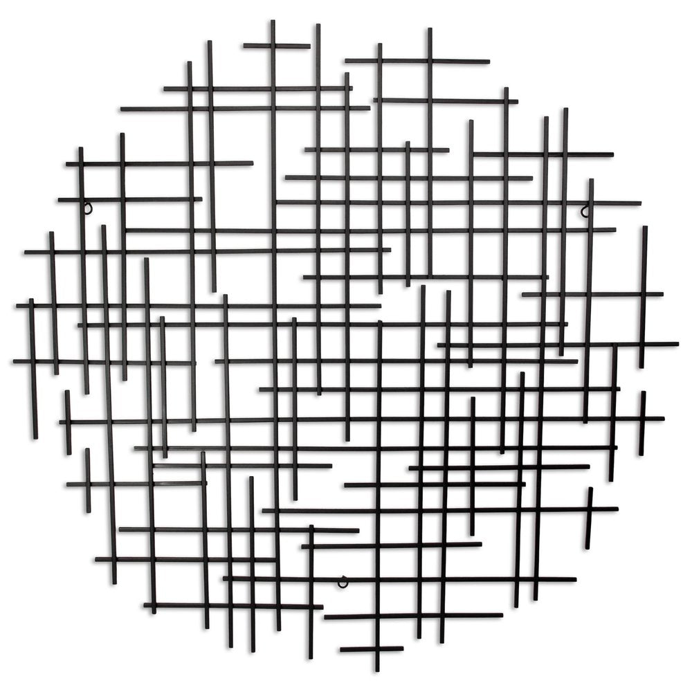 Add an air of fashion to your room and rejuvenate the space with this 37-inch x 38-inch black metal abstract wall decor. Adding this striking and unique hanging wall sculptural art to your space to make your room feel more finished and attractive. Utilize this opportunity to create a focal point in the room with this fabulous large scale wall decor option. 36.75-inch H x 38-inch W x 1.25-inch D