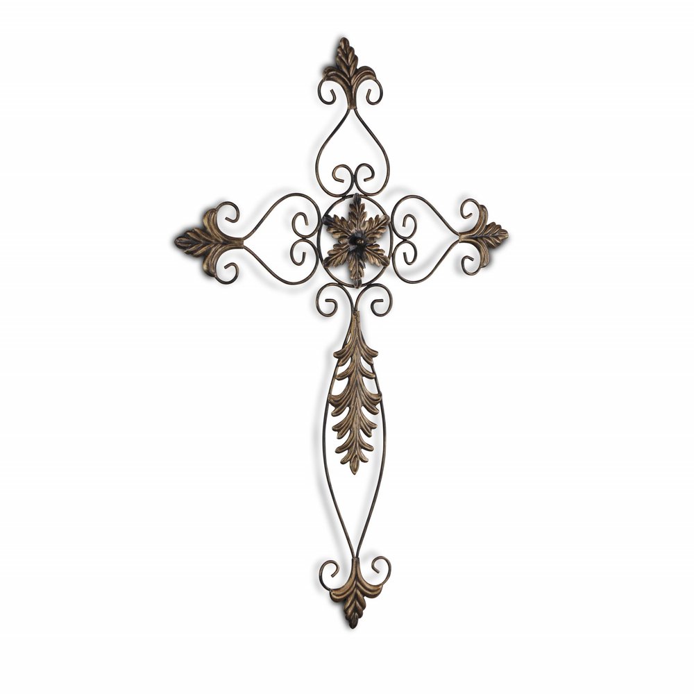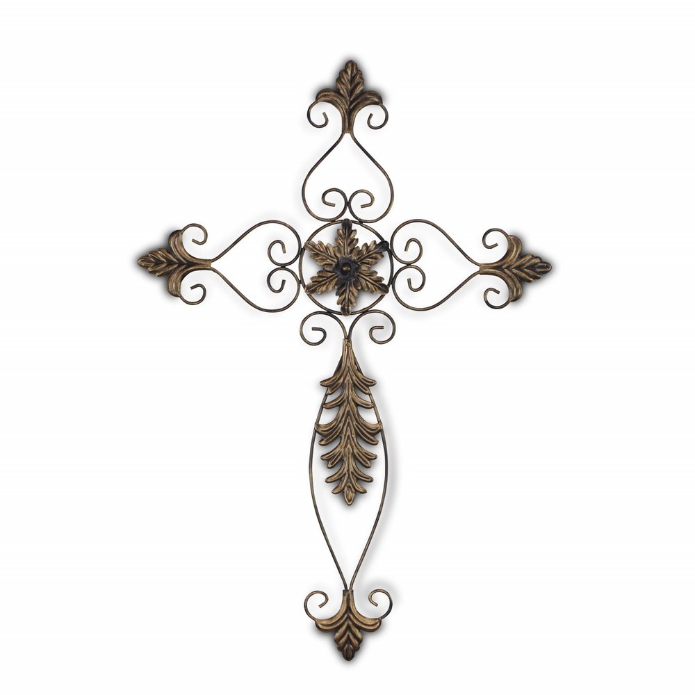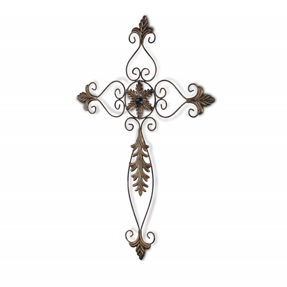 Unique and decorative, this 30-inch x 22-inch bronze floral cross metal hanging dimensional sculpture will leave a lasting impression. Handmade with care, this piece brings some authenticity to your space. Instantly liven up your space with this art that brings color and dimension to your walls. Celebrate your spirituality as you decorate with this cross wall art. Hang on your wall to add some up to date fashion and decoration. Utilize this opportunity to create a focal point in the room with this fabulous wall decor option. 29.95-inch H x 21.5-inch W x 0.5-inch D