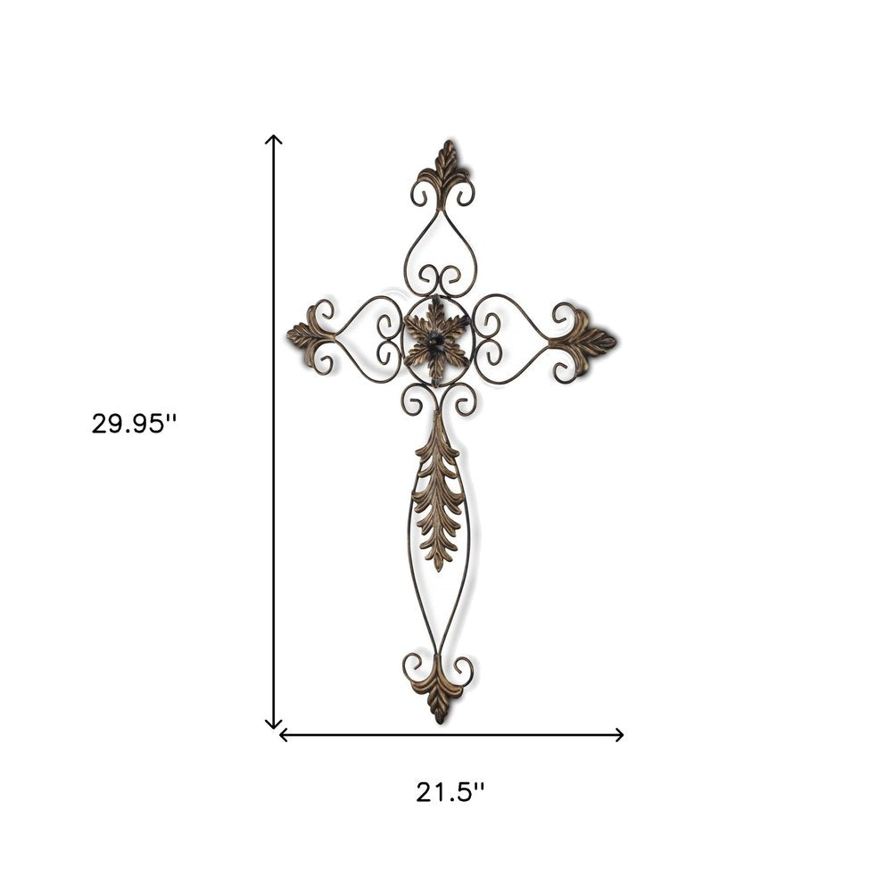 30" X 22" Bronze Floral Cross Metal Hanging Dimensional Sculpture