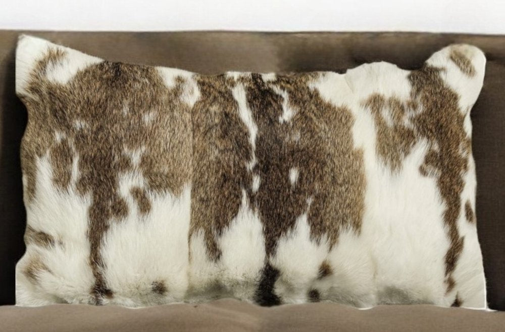 Add an air of fashion to your room and rejuvenate the space with this cute and fashionable 12-inch x 20-inch brown and white throw pillow. This brown and white hued piece represents the highest quality construction, expertly made from premium and genuine natural fur. Elegantly chic, this pillow is the epitome of luxury. Super soft and built to hold its shape, this cotton-filled pillow is a great option. Great to use on its own or mix with other decorations for the perfect look. Decorative throw pillows not only add color and dimension to your space but can be comfy and supportive when you are lounging and cuddling as well. 12-inch h x 20-inch w x 5-inch d.
