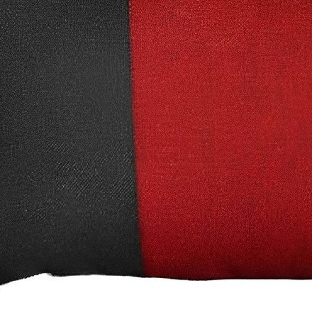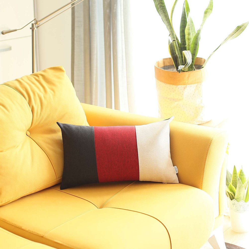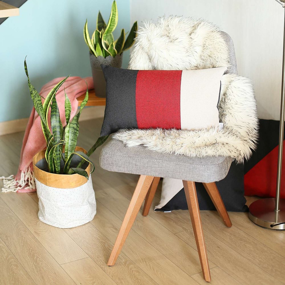Enrich the aesthetics of your contemporary living space with this Red Tripartite Lumbar Throw Pillow that exudes sophistication and class at its best. The elegant use of charcoal black, ruby red, and white in a uniform striped design with a hidden zipper makes it feel harmonious and welcoming to the eyes. Ensuring high-quality craftsmanship by Turkish artisans, this pillow is created with 100% polyester fabric that is OEKO-TEX Standard 100 certified to ensure product safety, enhanced durability, and color intensity while cleaning spots is a no brainer. The soft poly filling insert contributes to the fluffiness for a luxurious look and comfort. The contrasting tricolor design of this decorative lumbar pillow complements bold and neutral shades brilliantly to help your living space feel lively and inviting. 12” x 20” x 1”