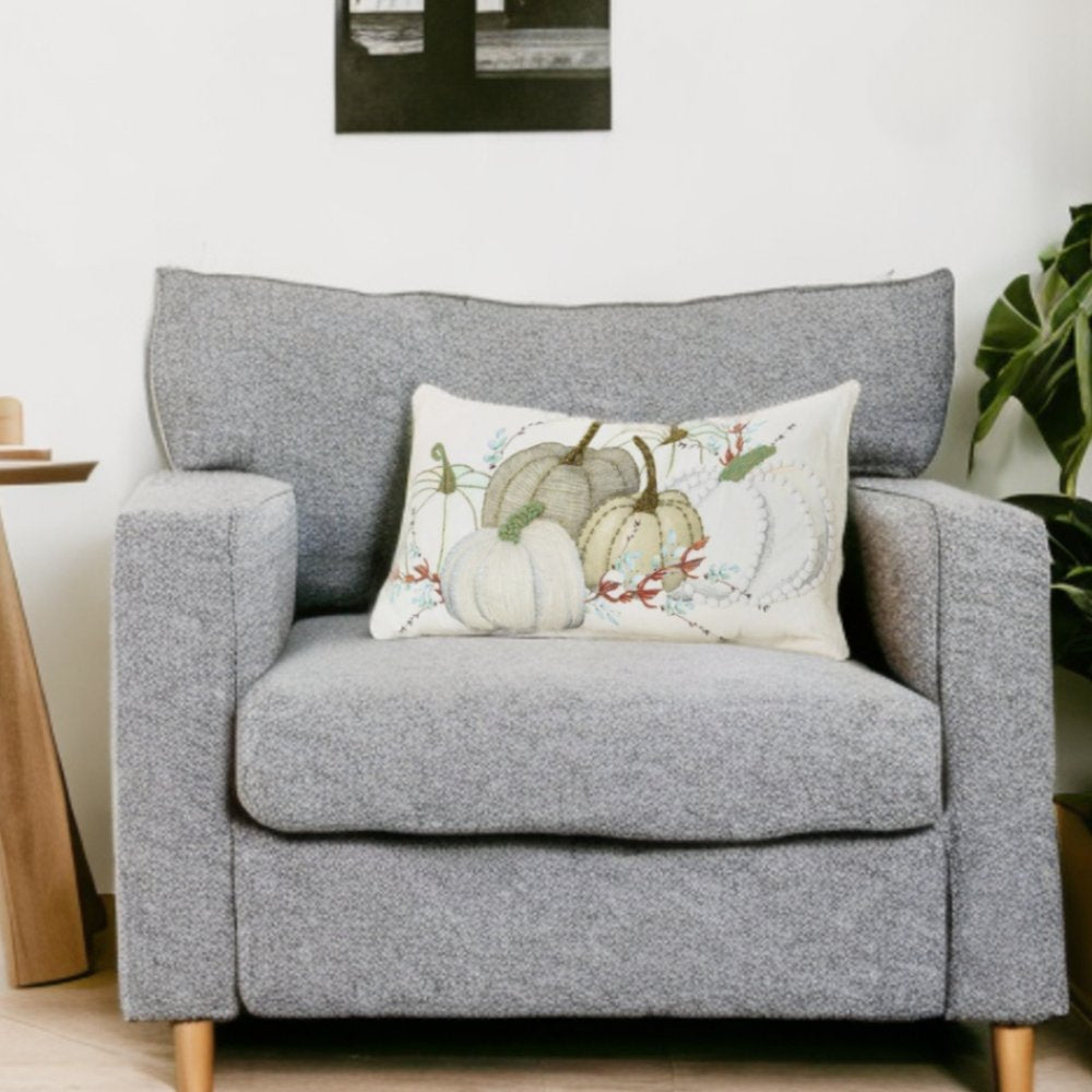 Bring a warm and festive fall feeling to your space with this cozy 14-inch x 14-inch green and white thanksgiving cotton pillow with embroidery edges. The green and white coloring of the soft and long lasting 100% cotton will add dimension and texture to your space. Super soft and built to hold its shape, this polyester pillow is a great option. Decorative throw pillows not only add color and dimension to your space but can be comfy and supportive when you are lounging and cuddling as well. A great decorative accessory for your favorite chair, to accent your sofa, or to use as part of your bed ensemble. 14-inch H x 14-inch W x 6.25-inch D