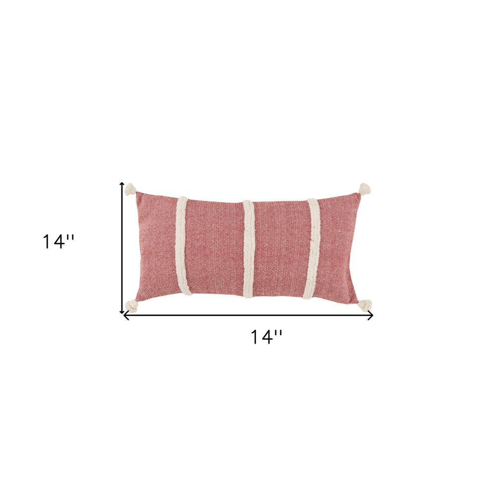 14" X 14" Red and White Cotton Pillow With Tassels Edges