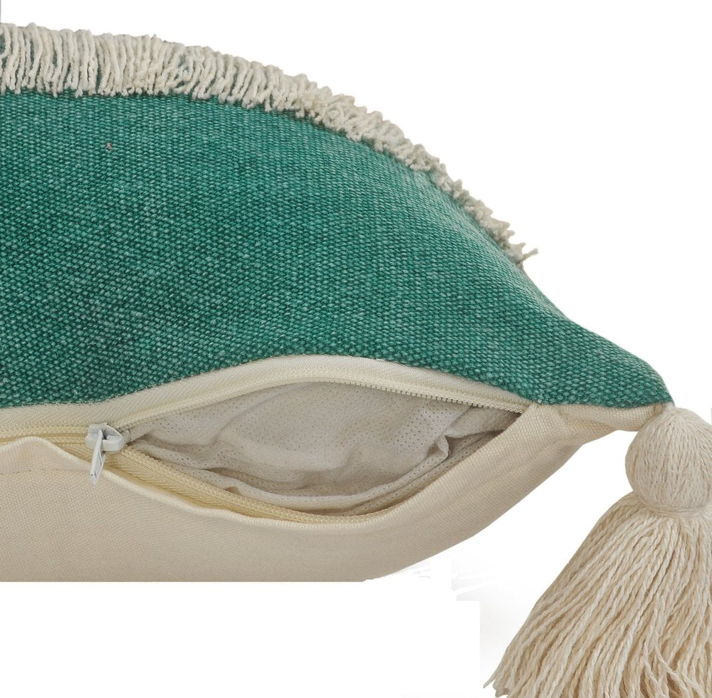 This 14" x 36" emerald green and off-white 100% cotton zippered pillow will add a beautiful decorative accent to your decor. This emerald green and off-white colored decorative pillow is made from high grade 100% cotton that makes it super soft to the touch and long lasting. Great to use on its own or mix with other decorations for the perfect look. Decorative pillows are a great way to change up the look and feel of your space easily and quickly. 14" H x 14" W x 36" D