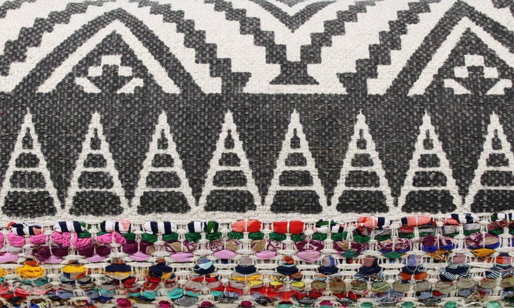 The perfect complement to your sofa, favorite chair, or bed, this 14" x 36" off-white black red blue orange and green 100% cotton geometric zippered pillow is a great decorative accent. Soft and textural off-white black red blue orange and green 100% cotton has been used to make this pillow look and feel like a real treasure. Great to use on its own or mix with other decorations for the perfect look. A great decorative accessory for your favorite chair, to accent your sofa, or to use as part of your bed ensemble. 14" H x 14" W x 36" D