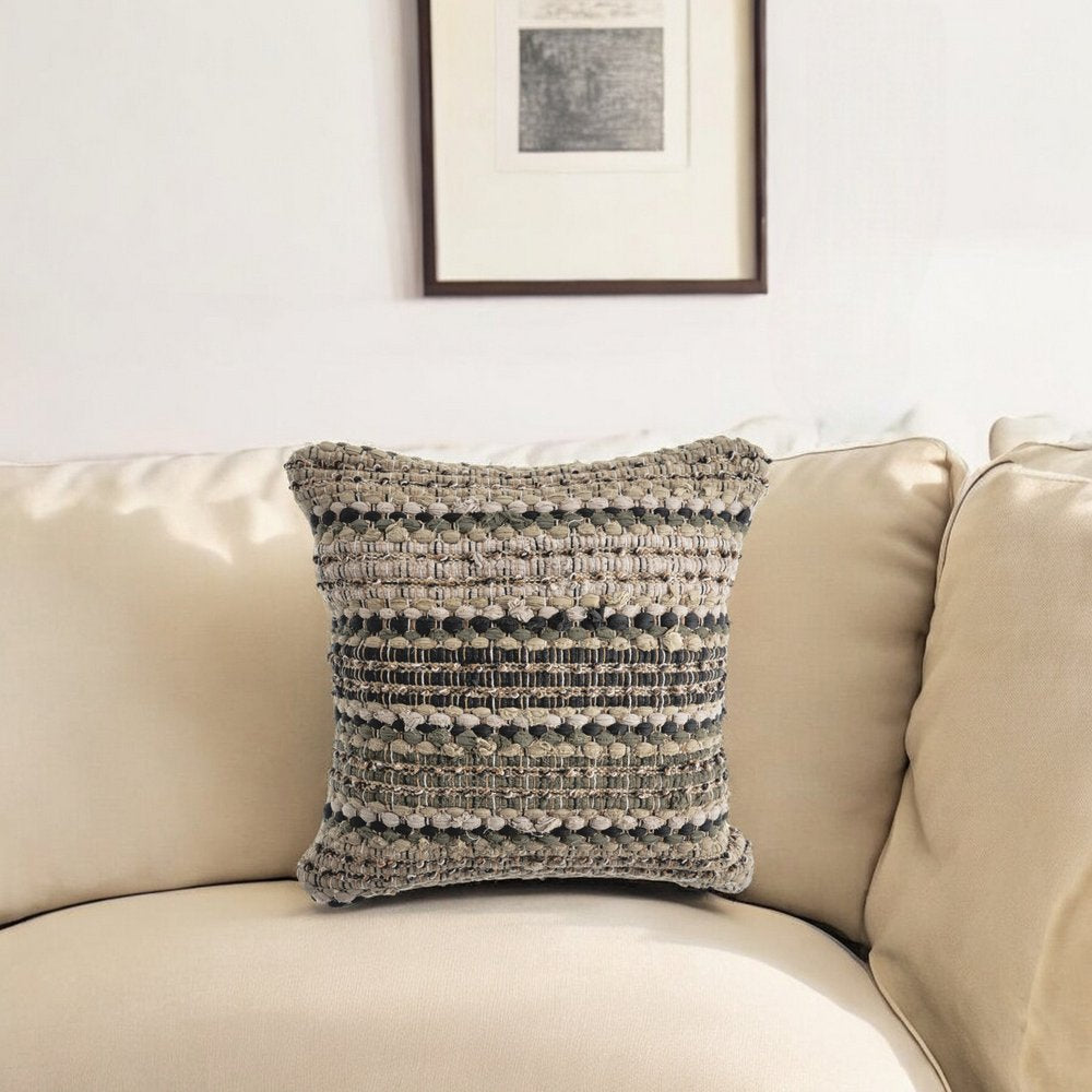 Unique and decorative, this comfortable 18-inch blue and green cotton striped throw pillow will leave a lasting impression. Durable blue and green cotton has been used to give this pillow a beautiful look that will stand the test of time. Super soft and built to hold its shape, this polyfill-filled pillow is a great option. Decorative pillows are a great way to change up the look and feel of your space easily and quickly. A great decorative accessory to add color and dimension to your favorite chair, accent your sofa, or to use as part of your bed ensemble. 18-inch h x 18-inch w x 6-inch d.