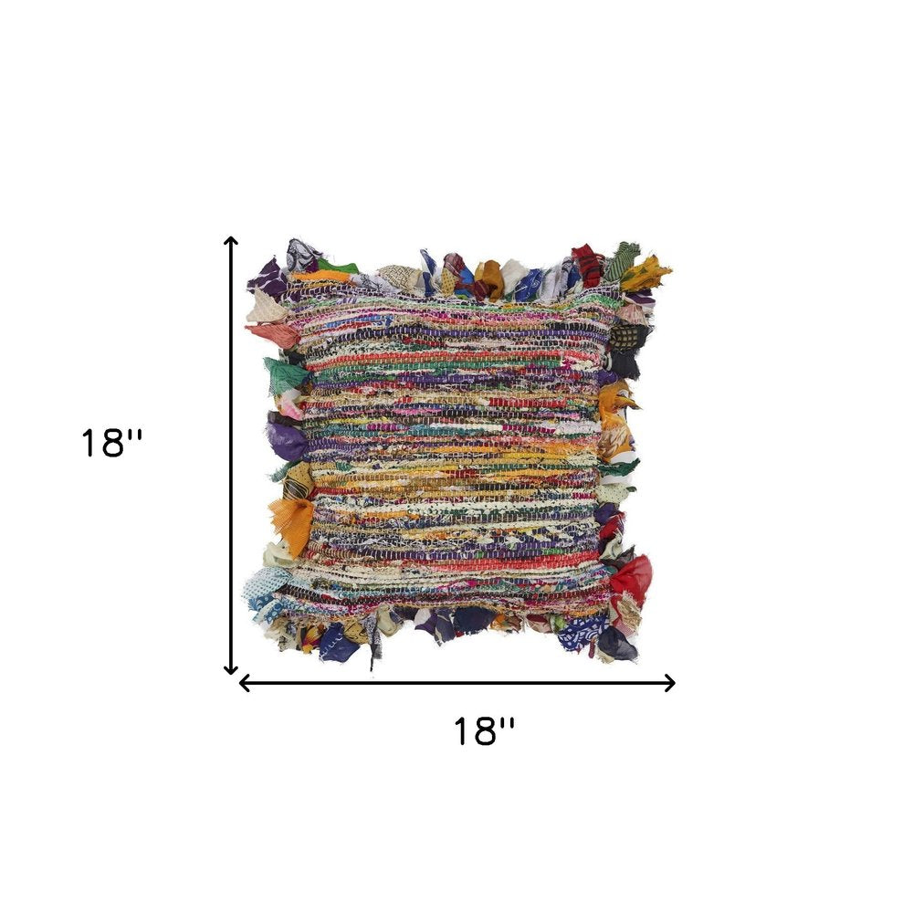 Bring a bit of fashion and zip to your space with this eye-catching and comfy 18-inch blue and red throw pillow with fringe. The blue and red coloring of the extremely durable and long lasting cotton will add dimension and texture to your space. Super soft and built to hold its shape, this polyfill-filled pillow is a great option. Great to use on its own or mix with other decorations for the perfect look. A great decorative accessory to add color and dimension to your favorite chair, accent your sofa, or to use as part of your bed ensemble. 18-inch h x 18-inch w x 6-inch d.