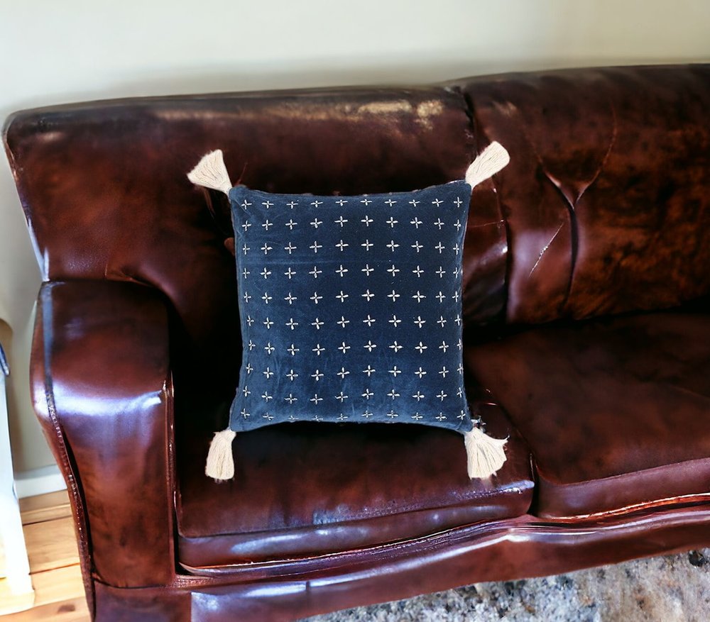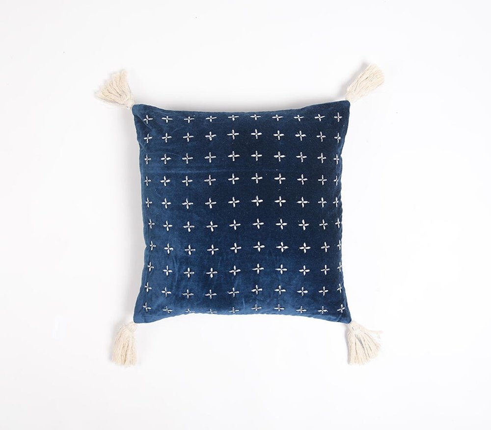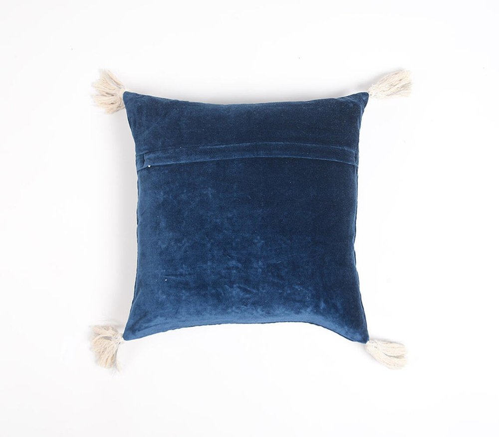 The 18-inch x 18-inch blue and white geometric cotton zippered pillow cover with embroidery and tassels is the perfect decorative accessory for your home. This blue and white colored decorative pillow cover is made from high grade 100% cotton that makes it super soft to the touch and long lasting. For anyone that loves to decorate or accent their space with color and texture. Decorative pillows are a great way to change up the look and feel of your space easily and quickly. 18-inch H x 18-inch W x 0.1-inch D