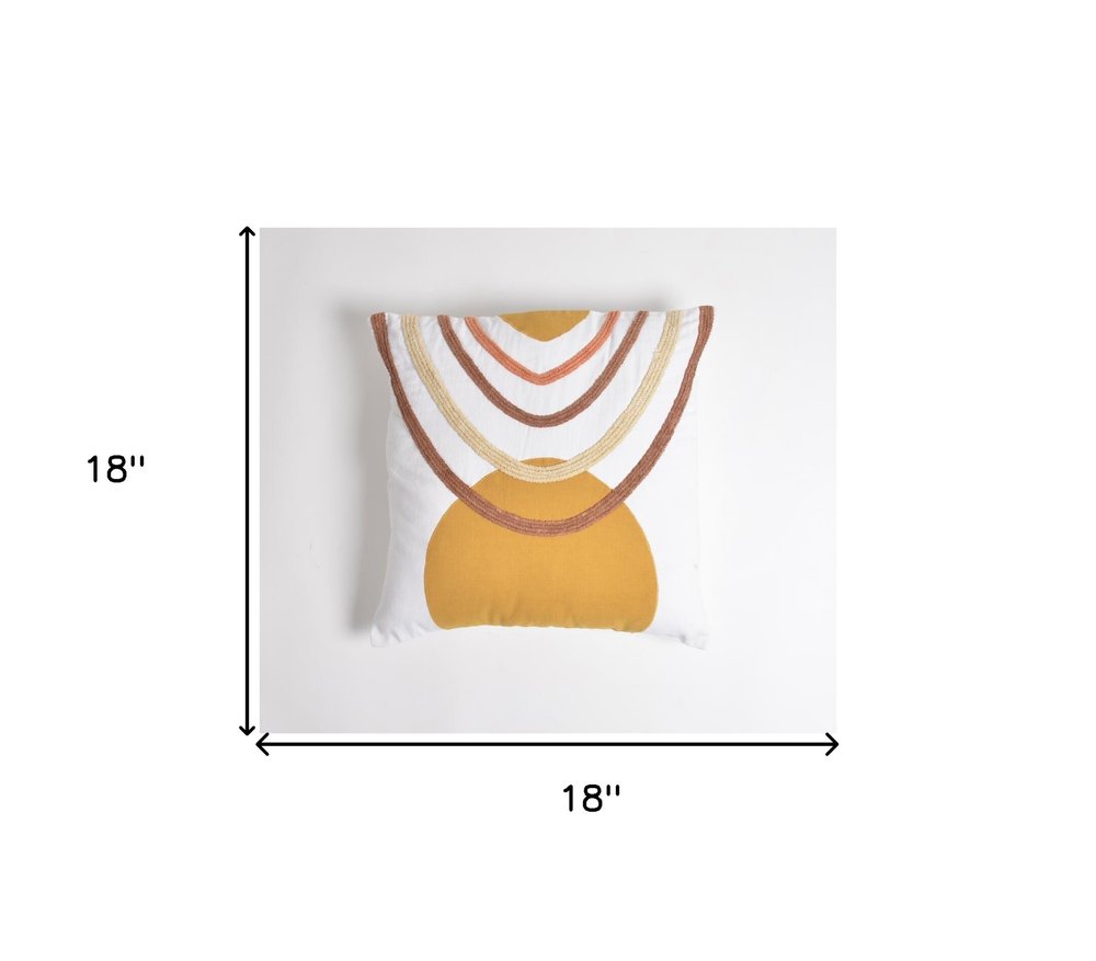 18" X 18" White and Gold Boho Cotton Pillow Cover With Embroidery