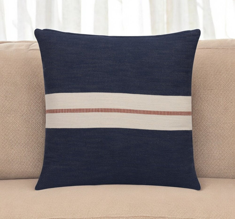 20" X 20" Yellow Striped Cotton Zippered Pillow