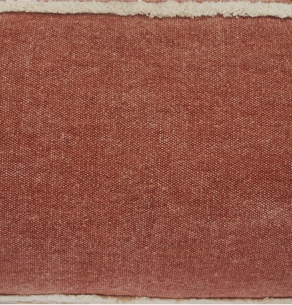 This 14" x 36" orange and off-white 100% cotton striped zippered pillow will add a beautiful decorative accent to your decor. Soft and textural orange and off-white 100% cotton has been used to make this pillow look and feel like a real treasure. For anyone that loves to decorate or accent their space with color and texture. A great decorative accessory for your favorite chair, to accent your sofa, or to use as part of your bed ensemble. 14" H x 14" W x 36" D