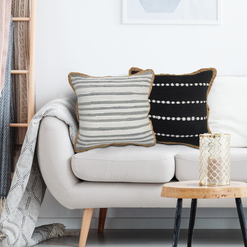 The perfect complement to your sofa, favorite chair, or bed, this 18" x 18" white gray and tan 100% cotton striped zippered pillow is a great decorative accent. This white gray and tan hued piece represents quality construction, expertly made from premium 100% cotton that is not only long lasting but super soft to the touch as well. Decorative throw pillows not only add color and dimension to your space but can be comfy and supportive when you are lounging and cuddling as well. A great decorative accessory for your favorite chair, to accent your sofa, or to use as part of your bed ensemble. 18" H x 18" W x 18" D
