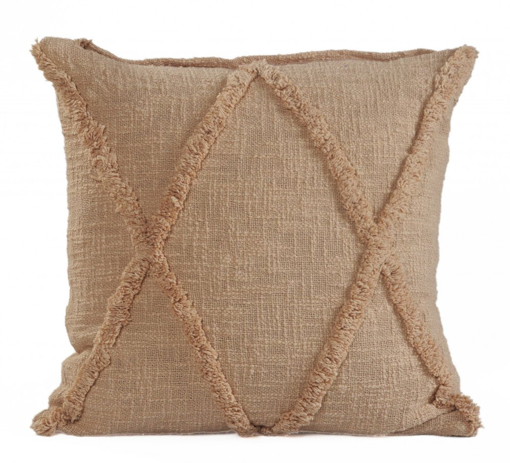 Unique and decorative, this comfortable 18" x 18" taupe and brown 100% cotton geometric zippered pillow will leave a lasting impression. The taupe and brown coloring of the soft and long lasting 100% cotton will add dimension and texture to your space. Decorative throw pillows not only add color and dimension to your space but can be comfy and supportive when you are lounging and cuddling as well. A great decorative accessory for your favorite chair, to accent your sofa, or to use as part of your bed ensemble. 18" H x 18" W x 18" D