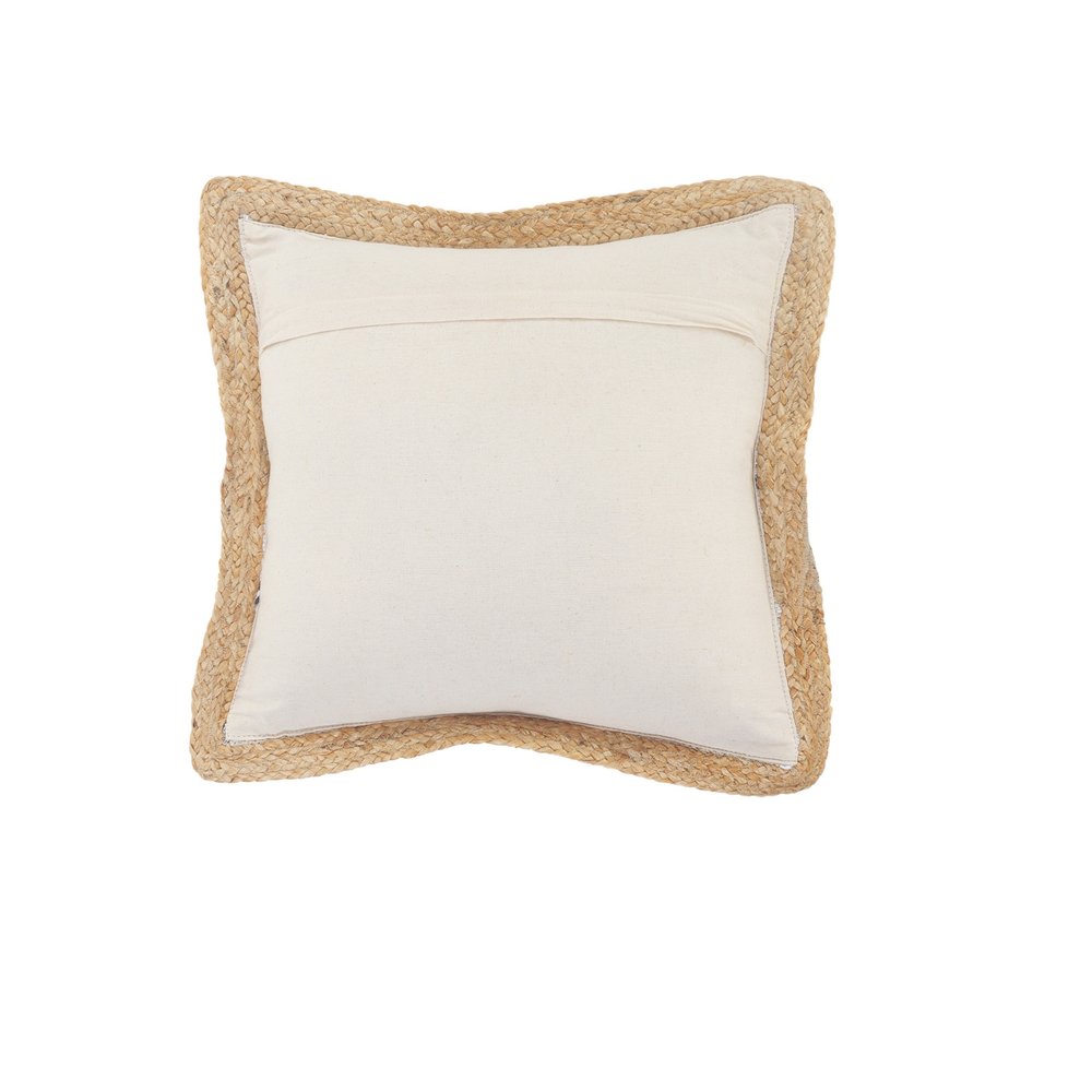 Unique and decorative, this comfortable 20-inch tan orange and blue striped cotton and jute throw pillow will leave a lasting impression. This soft and durable decorative pillow is expertly made of high grade, long lasting chindi style cotton and jute in a rainbow of multi colors. Super soft and built to hold its shape, this polyfilled pillow is a great option for anyone that loves to decorate or accent their space with color and texture. 20-inch H x 20-inch W x 4-inch D