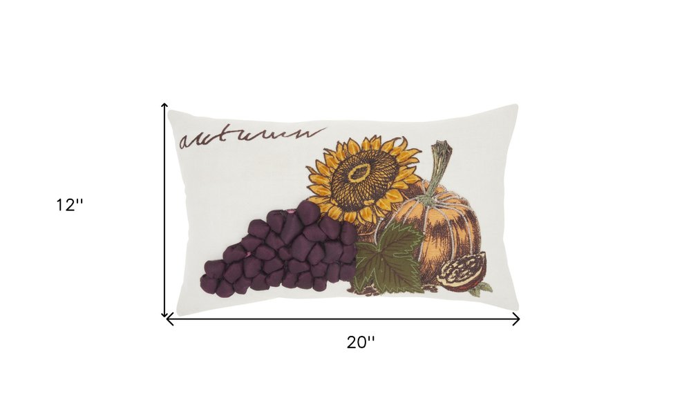 The perfect complement to your sofa, favorite chair, or bed, this 12-inch x 20-inch lumbar autumn cotton throw pillow with embroidery is a great decorative accent. Bring a warm and festive fall feeling to your space with this cozy 12-inch x 20-inch lumbar autumn cotton throw pillow with embroidery. Embroidered decorative accents add some high end and hand-crafted textural designer touches. Great to use on its own or mix with other decorations for the perfect look. A great decorative accessory to add color and dimension to your favorite chair, accent your sofa, or to use as part of your bed ensemble. 12.00-inch h x 20.00-inch w x 5.00-inch d.
