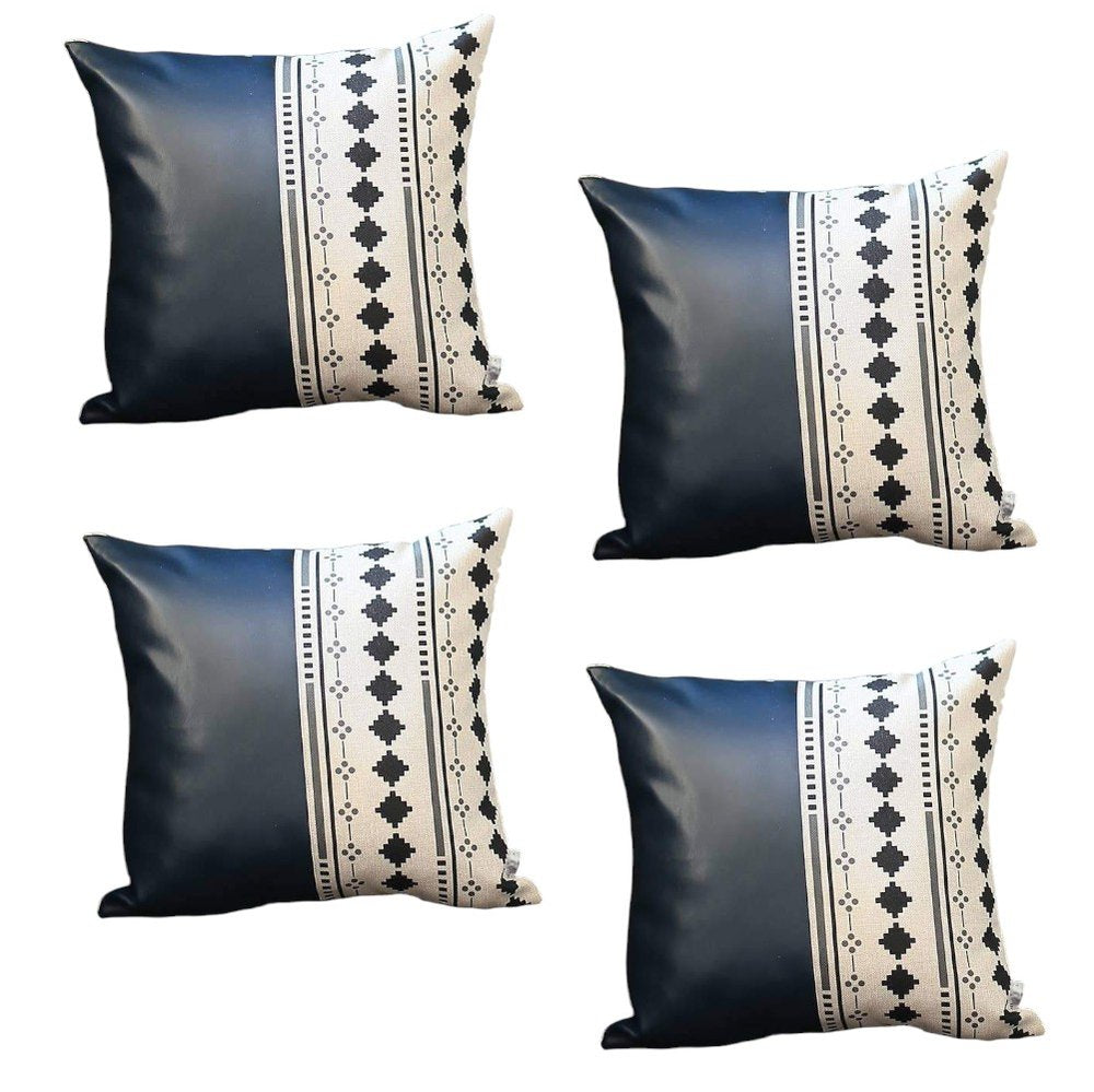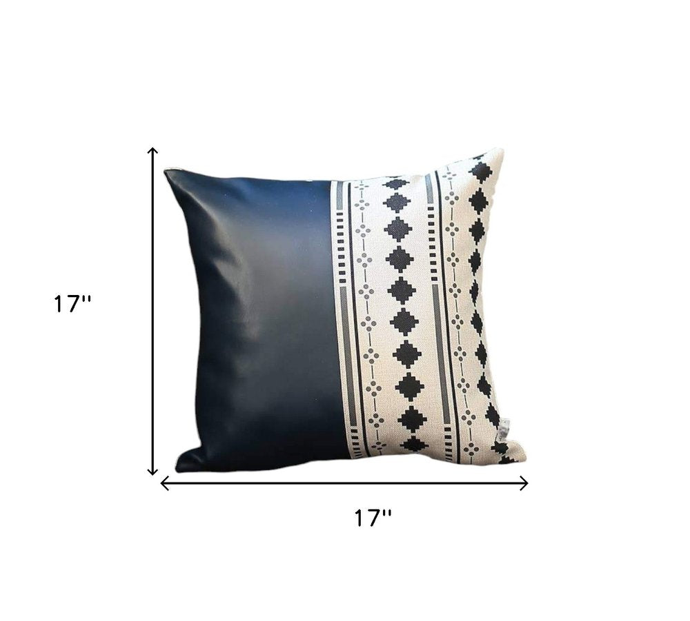 Bring a bit of fashion and zip to your space with this eye-catching and comfy set of four 17-inch navy blue diamond fabric and faux leather throw pillows. This navy blue colored decorative pillow set is made from high grade polyester and faux leather that is durable and soft to the touch. This soft polyfill filled pillow not only is decorative but made to be comfy and cozy all day long. For anyone that loves to decorate or accent their space with color and texture. Decorative throw pillows not only add color and dimension to your space but can be comfy and supportive when you are lounging and cuddling as well. 17-inch h x 17-inch w x 6.4-inch d