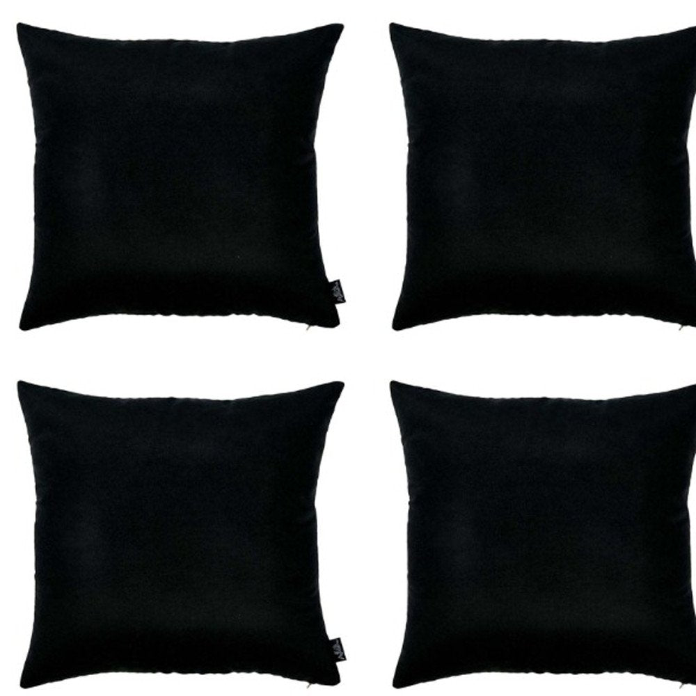 Set Of Four 18" X 18" Black Polyester Zippered Pillow Cover