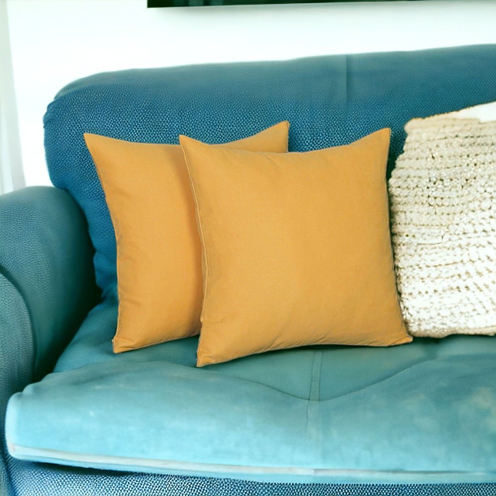Set Of Two 16" X 16" Yellow Polyester Zippered Pillow Cover