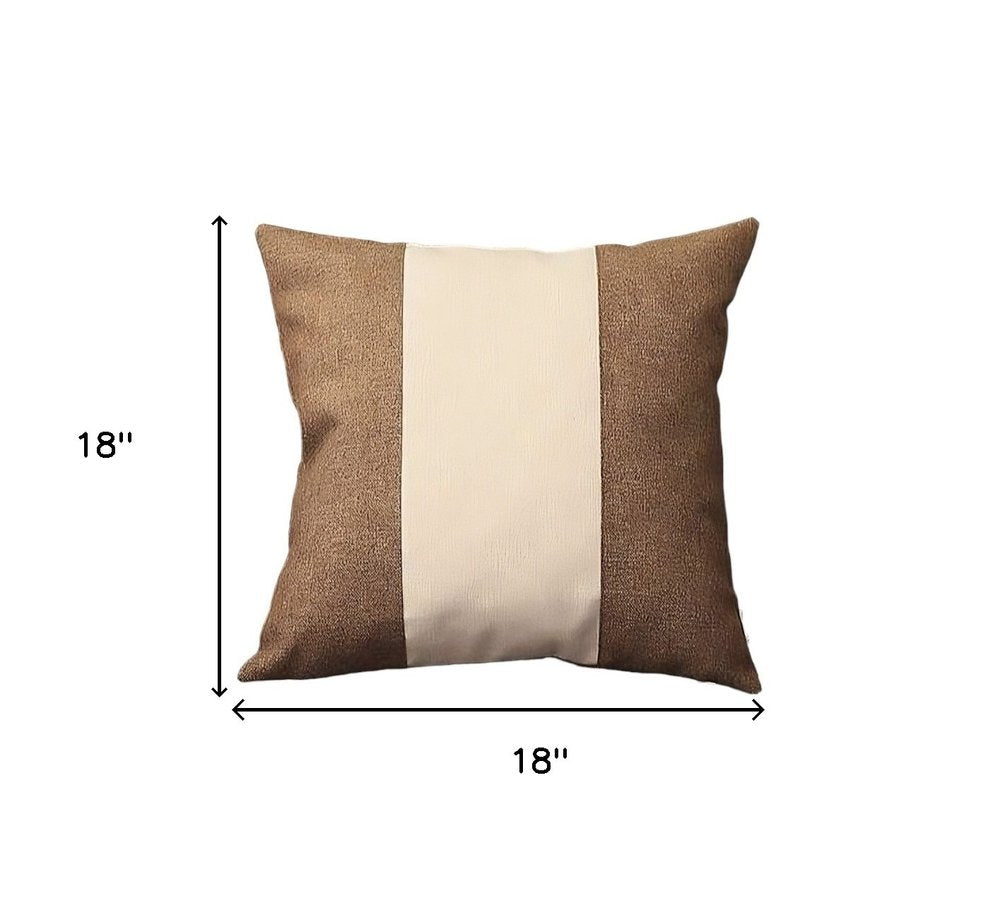 The set of two 18-inch brown and ivory color block fabric throw pillows is the perfect decorative accessory for your home. Ultra durable brown and ivory polyester has been used to make this decorative pillow set a beautiful look that will stand the test of time. This soft polyfill filled pillow not only is decorative but made to be comfy and cozy all day long. Great to use on its own or mix with other decorations for the perfect look. A great decorative accessory to add color and dimension to your favorite chair, accent your sofa, or to use as part of your bed ensemble. 18-inch h x 18-inch w x 3.2-inch d