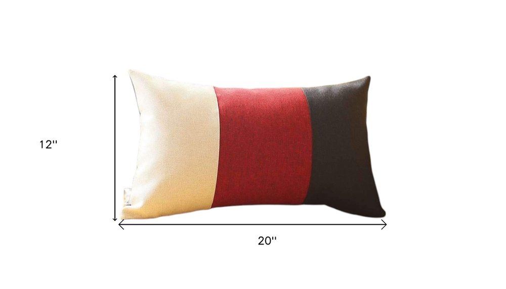 Set of Two 12" X 20" Black Red and Ivory Color Block Fabric Lumbar Throw Pillows