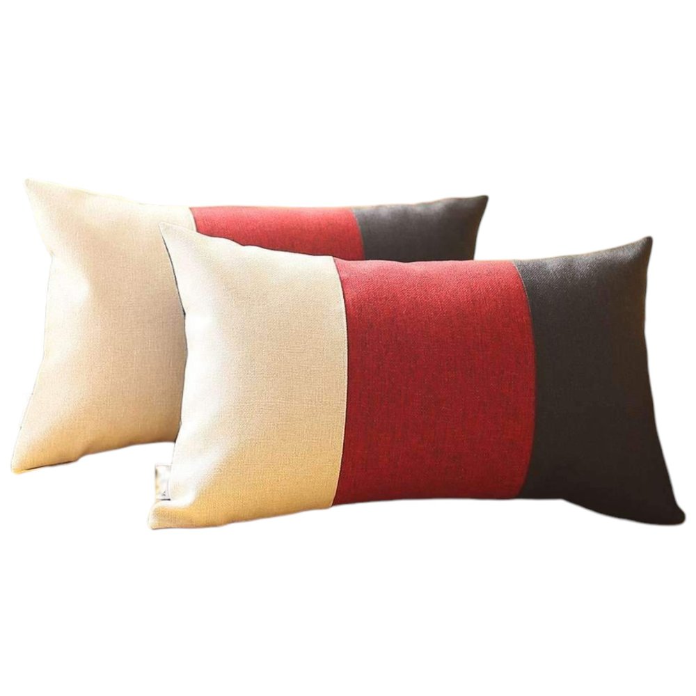 Keywords fabric lumbar throw pillows, block fabric lumbar throw pillows, lumbar throw pillows, ivory color block fabric lumbar, set 12" X 20" black red