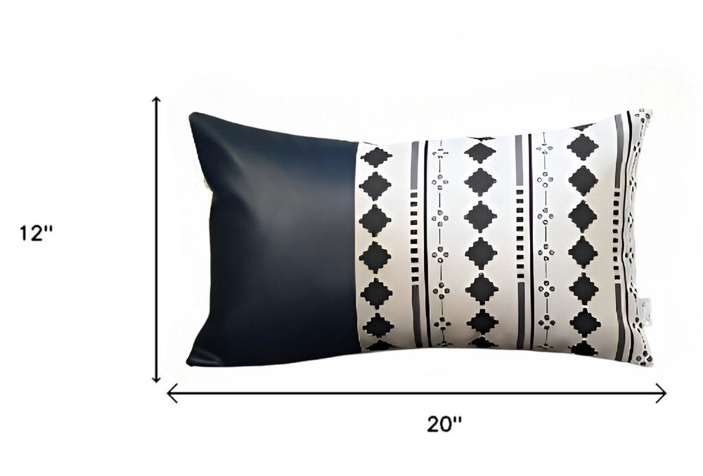 Set of Two 12" X 20" Navy Blue Diamond Fabric and Faux Leather Lumbar Throw Pillows