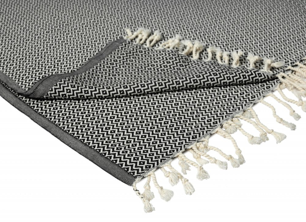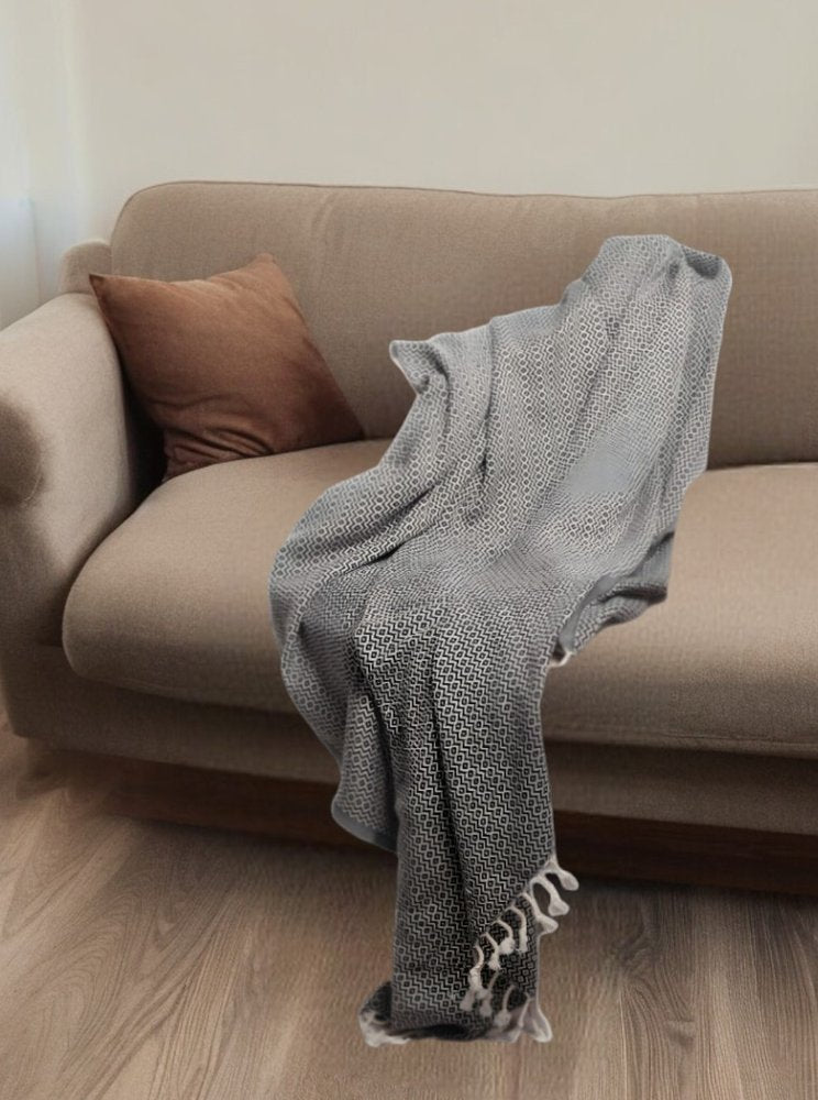 woven cotton geometric throw blanket, cotton geometric throw blanket, white woven cotton geometric throw, blue white woven cotton geometric, geometric throw blanket |