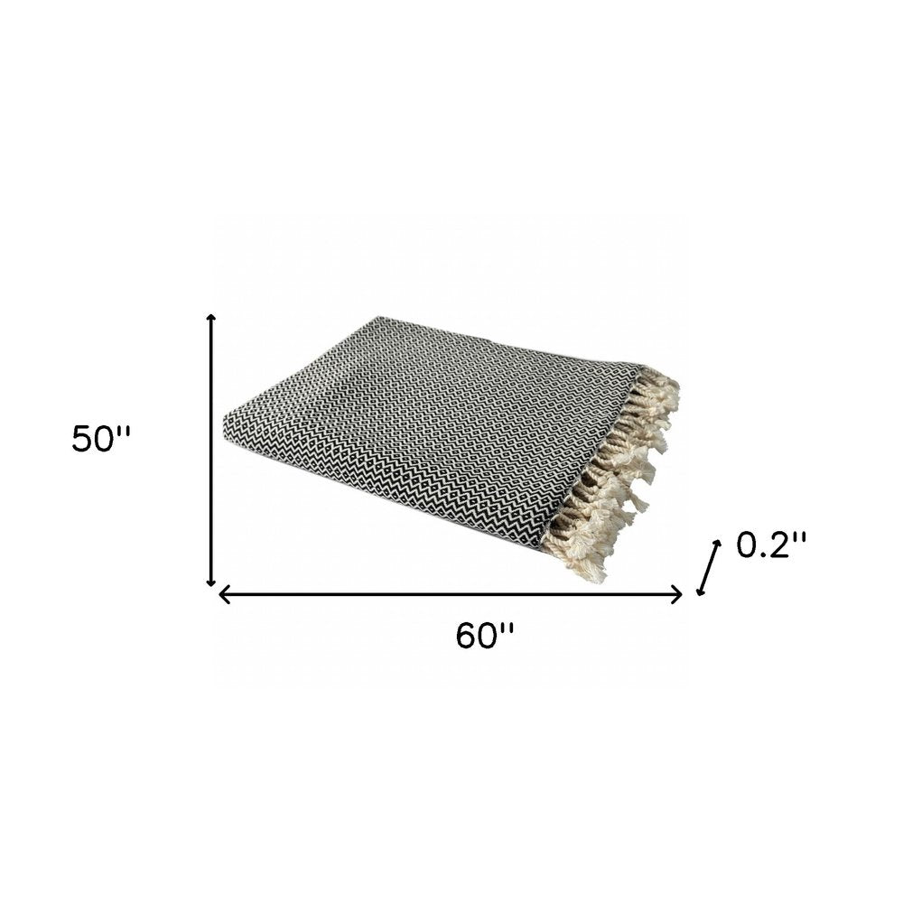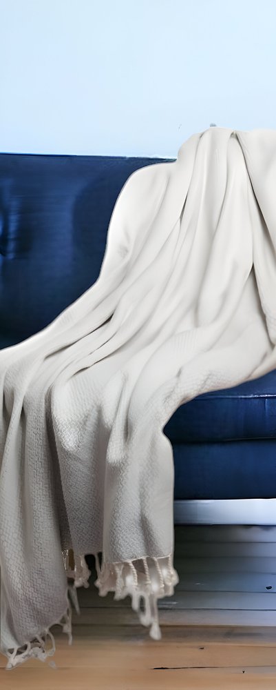 This 50-inch x 0-inch blue and white woven cotton geometric throw blanket with fringe is the best (and most stylish) way to wrap you and your loved ones in the epitome of cozy all year long. Features a woven geometric design that offers sumptuous softness and texture that you'll cherish for years to come. Made from cotton this blanket will make a great addition to any room it's added to. Add extra texture to your decor and turn your room into an inviting space. Perfect for your favorite chair, bed or lounging on the couch, this blanket helps bring a warm and fashionable flair to your space. 60-inch H x 50-inch W x 0.2-inch D
