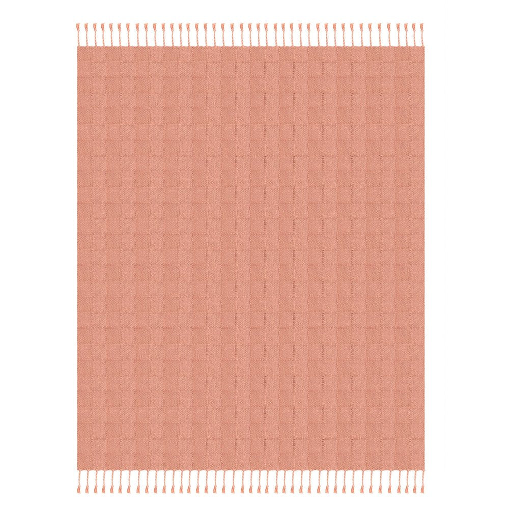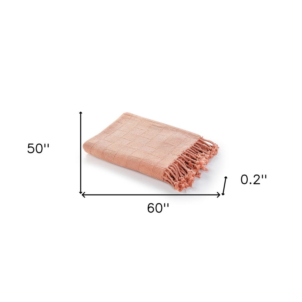 This 50-inch x 60-inch pink woven cotton throw blanket with fringe is a stylish addition to any sofa. Features a woven solid color design that offers sumptuous softness and texture that you'll cherish for years to come. Made from cotton this blanket will make a great addition to any room it's added to. Layering your furnishings with a decorative throw has the ability to awaken a tired living room or elevate the design of your bedroom simply by providing elements of color and texture that weren't there before. This cozy throw blanket is sure to become your go-to couch companion. 60-inch H x 50-inch W x 0.2-inch D