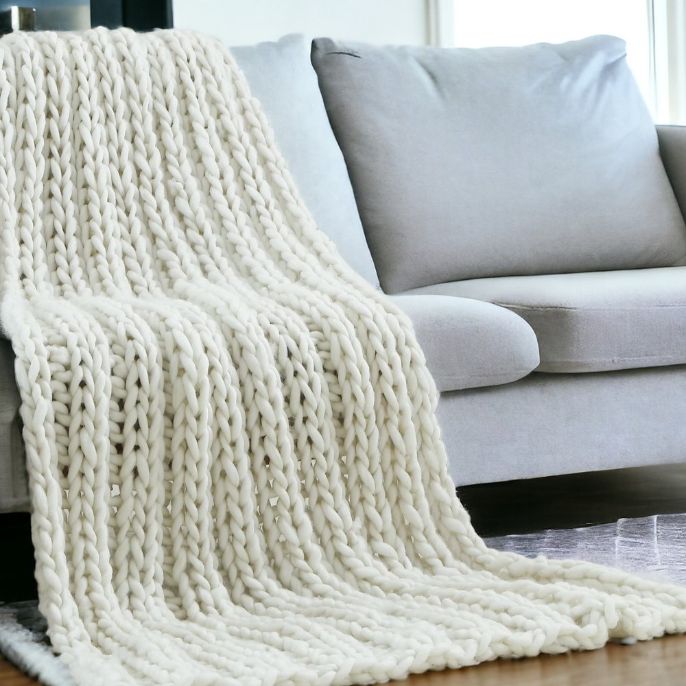 This versatile 60-inch x 40-inch blush knitted polyester throw blanket is a charming accent that brings comfort and charm, wherever it's placed. This textural knitted blanket in a solid color pattern looks fabulous and is perfect for staying warm cozy in the winter months. Made from polyester this blanket will make a great addition to any room it's added to. Layering your furnishings with a decorative throw has the ability to awaken a tired living room or elevate the design of your bedroom simply by providing elements of color and texture that weren't there before. This cozy throw blanket makes the perfect add-on to movie nights and lazy afternoons. 40-inch H x 60-inch W x 0.5-inch D