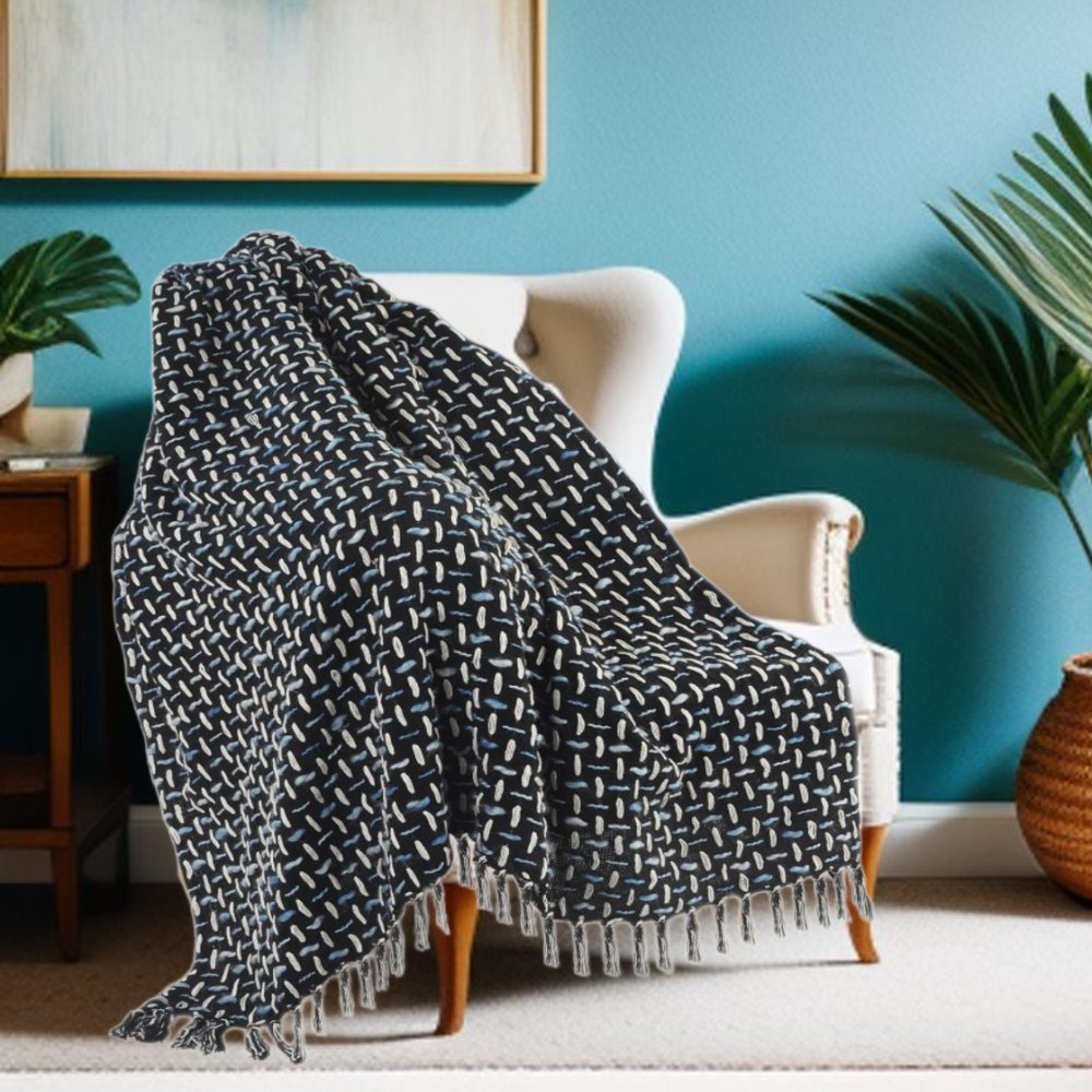 woven cotton geometric throw blanket, cotton geometric throw blanket, geometric throw blanket, gold woven cotton geometric throw, black gold woven cotton geometric |