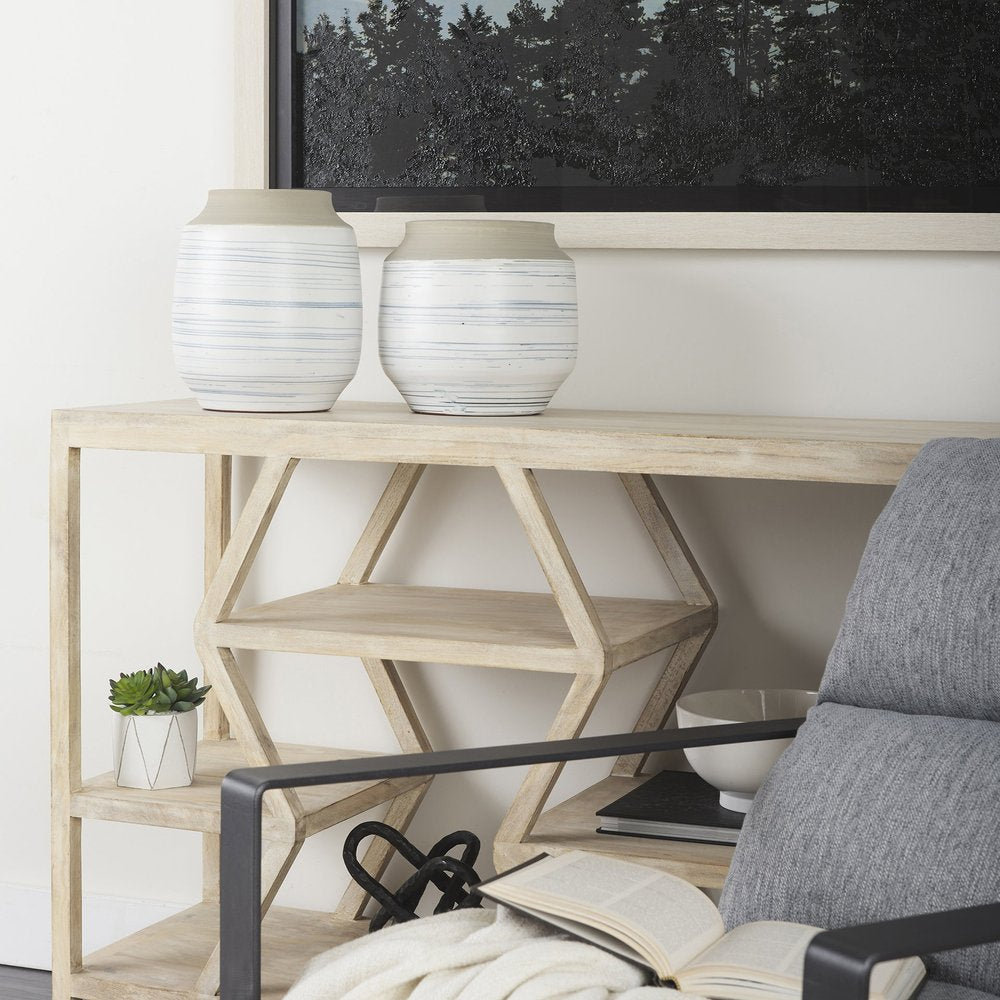 9" White Blue and Sand Abstract Cylinder Ceramic Table Vase
