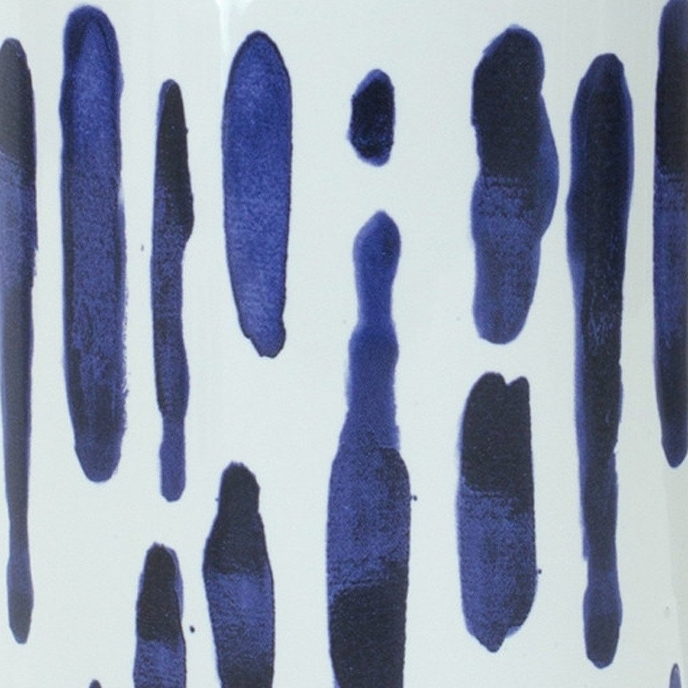 Enhance your living space with this stylish set of two blue and white abstract cylinder ceramic table vase. The contemporary design and vibrant blue and white color scheme bring a modern touch to any room. Crafted from ceramic, these vases exude quality and elegance. The cylinder shape adds a unique flair, perfect for showcasing flowers or simply as standalone decor pieces. With a set of two included, you can display them together for a cohesive look or separately to spread the charm throughout your home. Elevate your decor with this sophisticated set that effortlessly combines style and functionality. 10-inch H x 4.25-inch W x 4.25-inch D