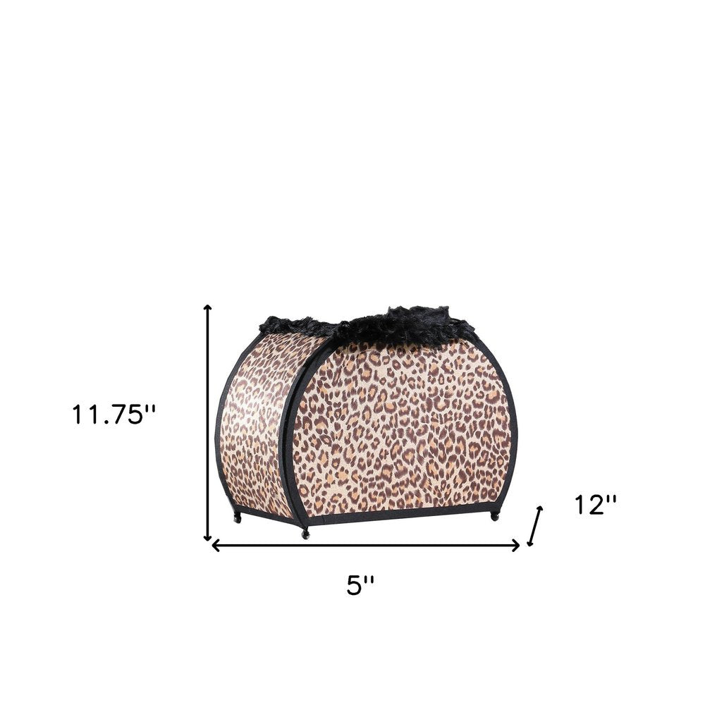 This 12" brown and white funky leopard pattern novelty table lamp is a glam combination of fun design and function. The brown and white leopard patterned shade looks like a purse and is even accented with black faux fur. This fabulous lux lamp is designed to provide general lighting to the area and add a bit of exotic personality to your room. Bring some lite and good fashion vibes into your space with this updated and stylishly designed lamp. 11.75" H x 5" W x 12" D