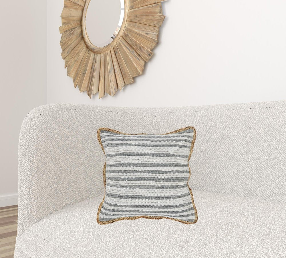 18" X 18" White Gray And Tan 100% Cotton Striped Zippered Pillow
