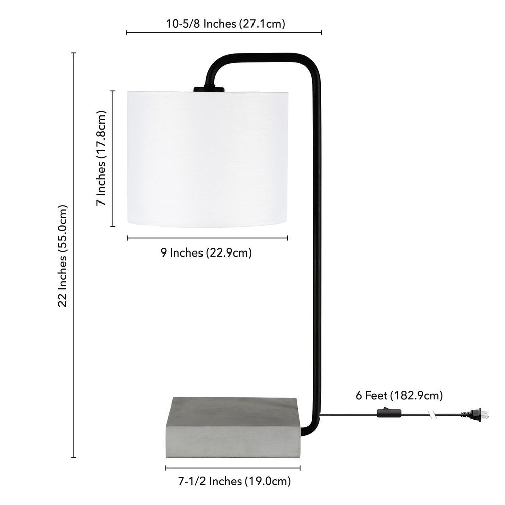 This 22-inch black and gray concrete arched table lamp with white drum shade is the perfect combination of design and function. The base of this lamp is made of black and gray concrete. Includes a white fabric, drum shaped shade, making this a fashionable piece that will complement most any interior. A sophisticated take on a classic, this arched table lamp is a great option for a unique look. High quality design makes this a great lamp for not only lighting, but accenting a room with style. It is perfect for virtually any decor. 22-inch H x 10-inch W x 9-inch D