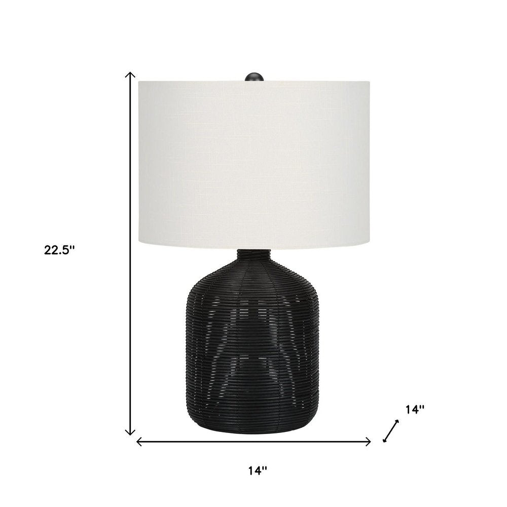 23" Black Rattan Round Table Lamp With Ivory Drum Shade