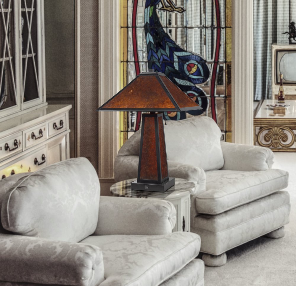 This 24" burnt orange metal two light table lamp with amber square shade is a great way to add some brightness to any corner of your home. The base of this lamp is made of burnt orange metal. This standard table lamp is designed to provide general lighting to the area. High quality design makes this a great lamp for not only lighting, but accenting a room with style. Bring some lite and good vibes into your space with this updated and stylishly designed lamp. 23.5" H x 16" W x 16" D
