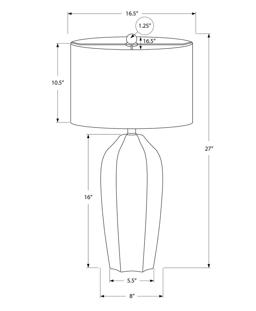 This 27-inch cream ceramic geometric table lamp with cream drum shade is the perfect combination of design and function. The base of this lamp is made of ceramic finished in a cream tone. The cream drum linen shade is a great compliment to this lamp. This standard table lamp is designed to provide general lighting to the area. Use this lamp anywhere and elevate the look of the whole space. It is perfect for virtually any decor. 27-inch H x 16.5-inch W x 16.5-inch D