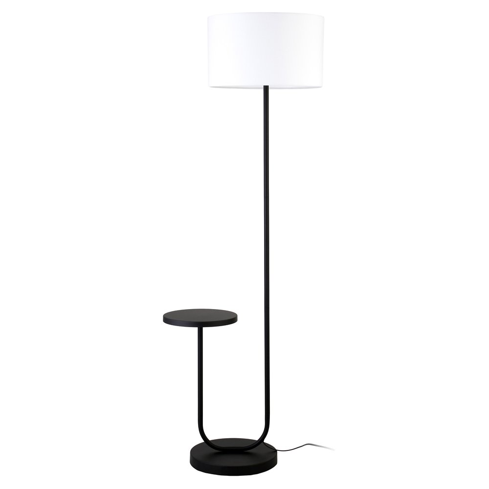Truly a mix of design and functionality that doesn't compromise on style, this 66" black tray table floor lamp with white no pattern frosted glass drum shade will be a great addition to your space. The base of this lamp is made of black metal. The lamp light itself is covered by a fabric, drum shaped shade, making this a classy piece that will complement most any interior. A fresh and updated take on two classics, this tray table floor lamp offers lots of functionality in a compact footprint. Offering you a combination of lamp and end table together in one, this mighty accent is just what you need beside your sofa, favorite chair, desk, or bed. Use this lamp anywhere and elevate the look of the whole space. It is perfect for virtually any decor. 65.75" H x 23.75" W x 16.5" D