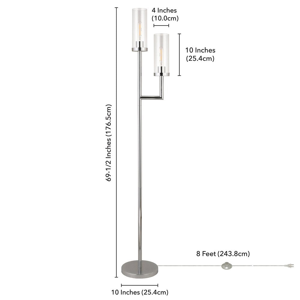 69" Nickel Two Light Torchiere Floor Lamp With Clear Transparent Glass Drum Shade
