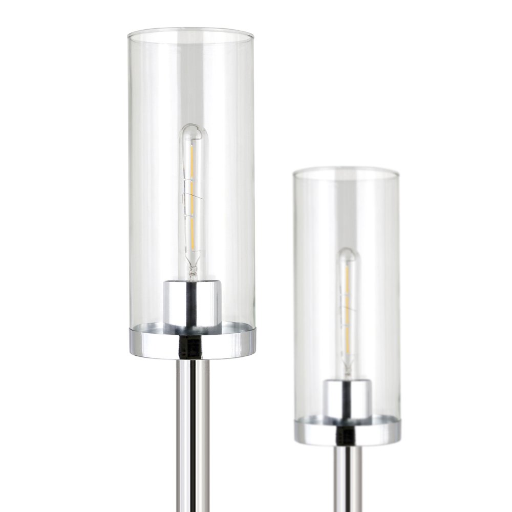 Add a bright anchor to your room with this 69-inch nickel two light torchiere floor lamp with clear transparent glass drum shade. The base of this lamp is made of nickel metal. The lamp light itself is covered by a glass, drum shaped shade, making this a classy piece that will complement most any interior. Add a soft warm glow to your space with this classic torchiere styled lamp. A straight pole extends upwards from a single base while the scooped shade shape refracts light upward and outward much like it's name sake,a torch. High quality design makes this a great lamp for not only lighting, but accenting a room with style. The perfect lamp to create just the right natural and soothing light in your space. 69-inch H x 11-inch W x 11-inch D