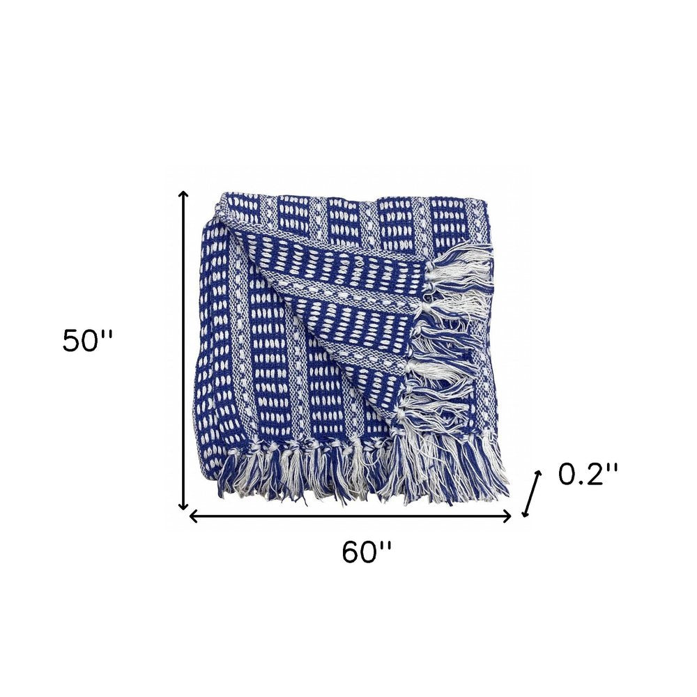 This blue and white woven cotton striped throw blanket is an essential for any cozy abode. Features a woven striped design that offers sumptuous softness and texture that you'll cherish for years to come. Made from cotton this blanket will make a great addition to any room it's added to. Layering your furnishings with a decorative throw has the ability to awaken a tired living room or elevate the design of your bedroom simply by providing elements of color and texture that weren't there before. This cozy throw blanket makes the perfect add-on to movie nights and lazy afternoons. 0.2" H x 50" W x 60" D
