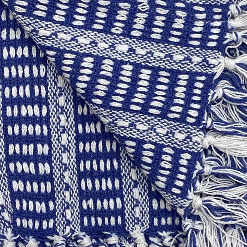 woven cotton striped throw blanket, cotton striped throw blanket, striped throw blanket, white woven cotton striped throw, blue white woven cotton striped |