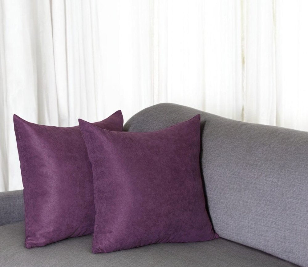 Set Of Two 18" X 18" Purple Polyester Zippered Pillow Cover